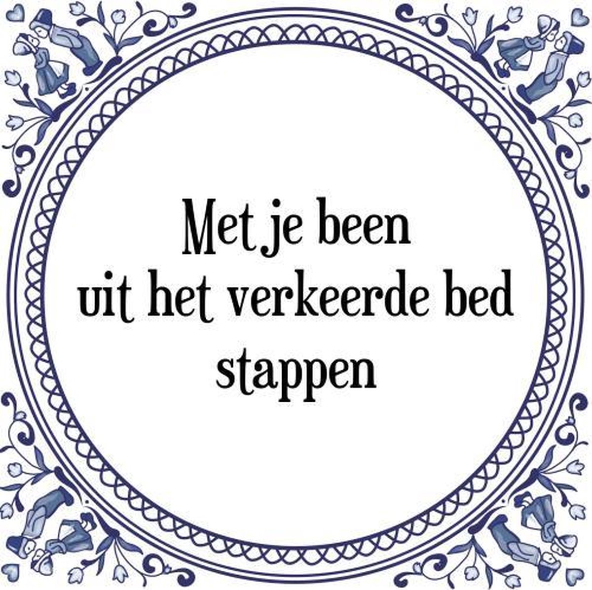 Tegeltje met Spreuk (Tegeltjeswijsheid) Met je been uit het verkeerde bed stappen +...