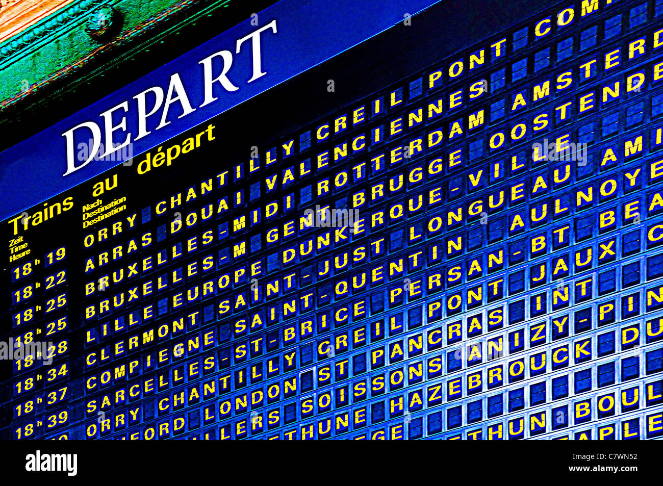 Paris, France. Departure board at Gare du Nord station. Heavily manipulated Stock Photo Alamy