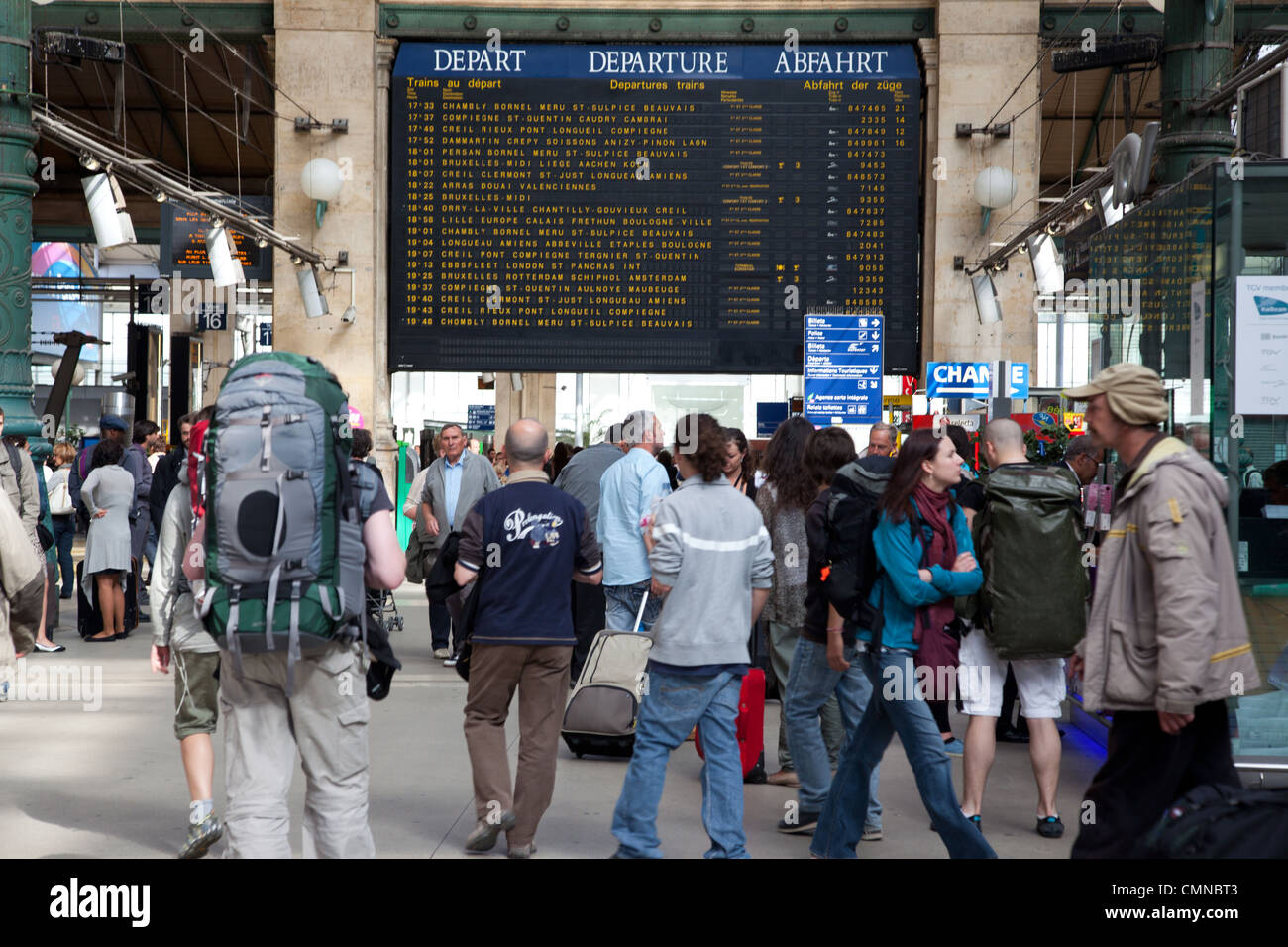 Passengers and a departure board in Gare du Nord in Paris France Stock Photo Alamy
