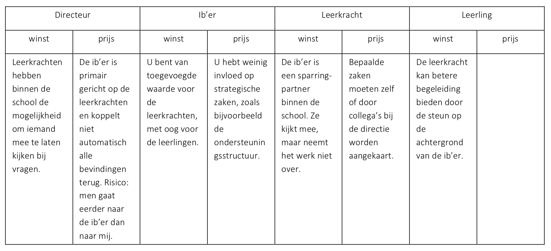De ib'er als kenniscoördinator: De ib'er is de onderwijskundig leider van de school en verantwoordelijk voor de in de functieomschrijving genoemde onderdelen. De interne begeleider kan een leerkracht zijn met een speciale taak. Ook kan het een functie zijn. In het laatste geval hoort hierbij ook verantwoordelijkheid en een hogere beloning.